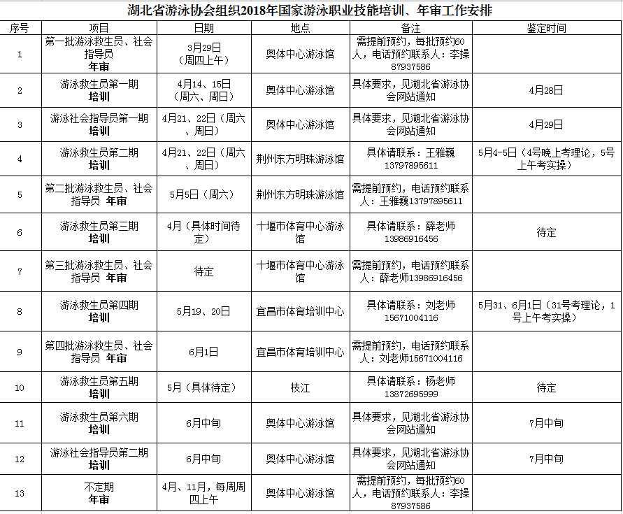 湖北省游泳协会组织2018年国家游泳职业技能培训、年审工作安排