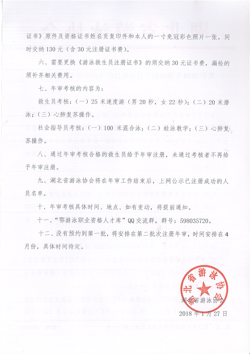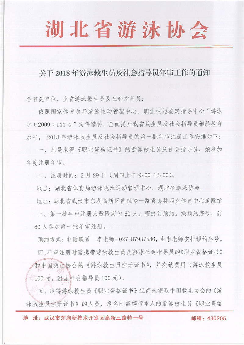关于2018年游泳救生员及社会指导员年审工作的通知